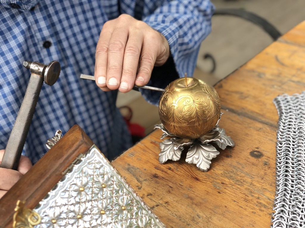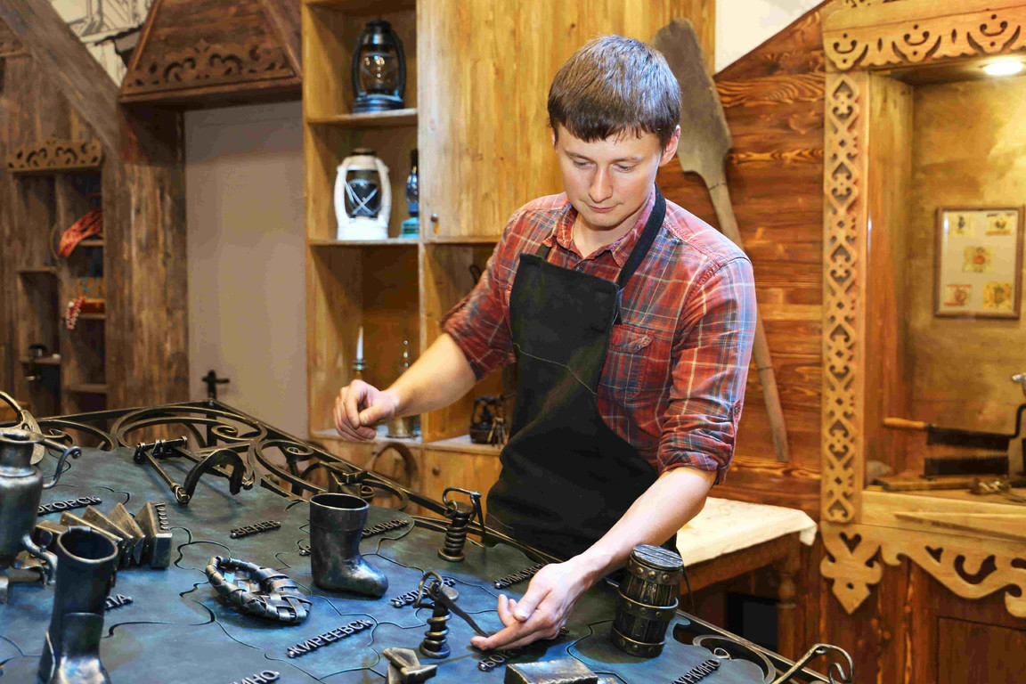 На занятии можно освоить азы кузнечного дела и под руководством опытного мастера изготовить на выбор вензель или сувенирную спицу.