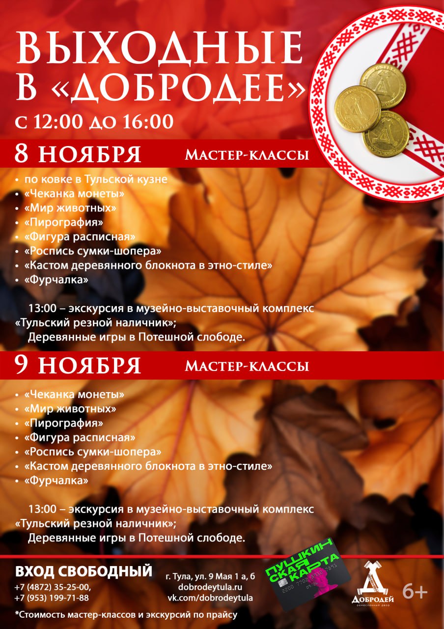 В воскресенье, 9 ноября, состоятся мастер-классы:
