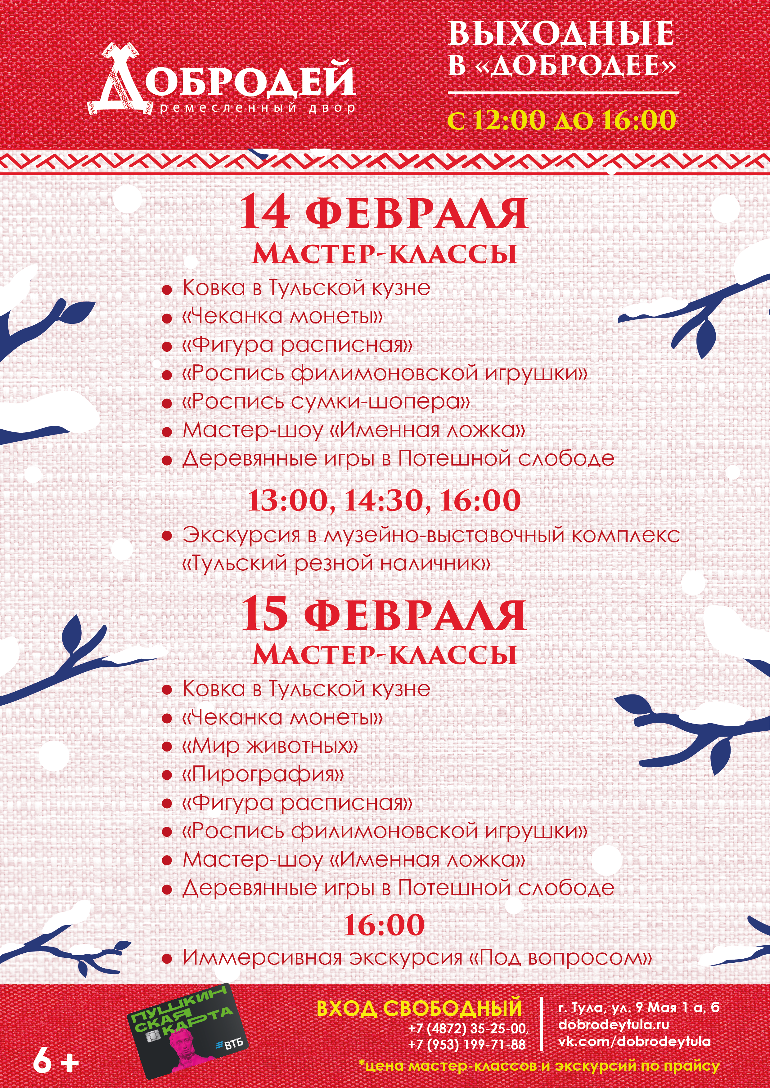 В воскресенье, 15 февраля, состоятся мастер-классы: