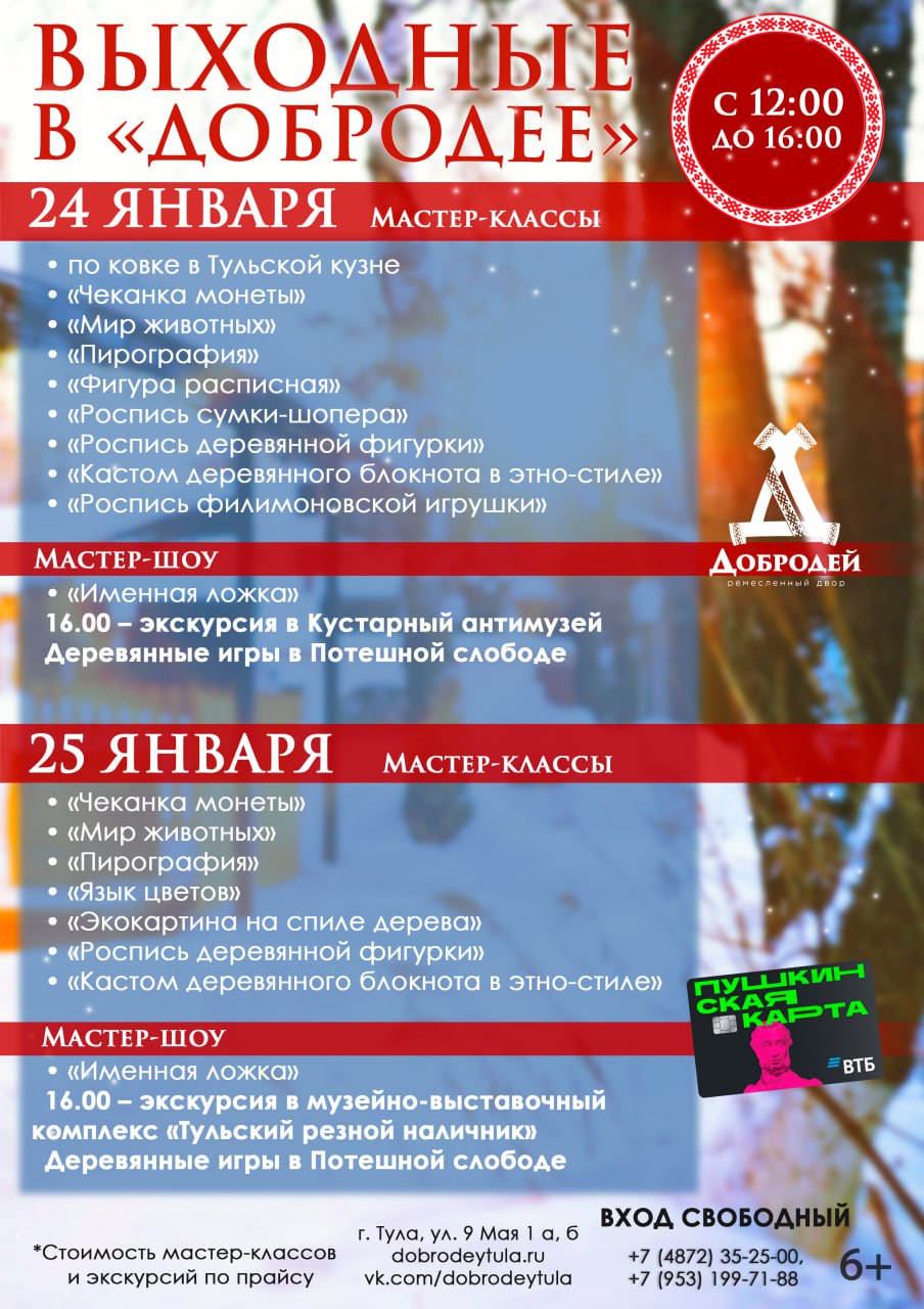 24 и 25 января добродеи приглашают детей и взрослых на творческие и ремесленные мастер-классы.