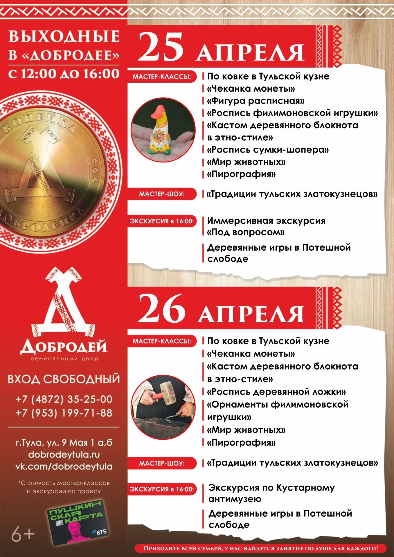 25 и 26 апреля добродеи приглашают детей и взрослых на творческие и ремесленные мастер-классы.