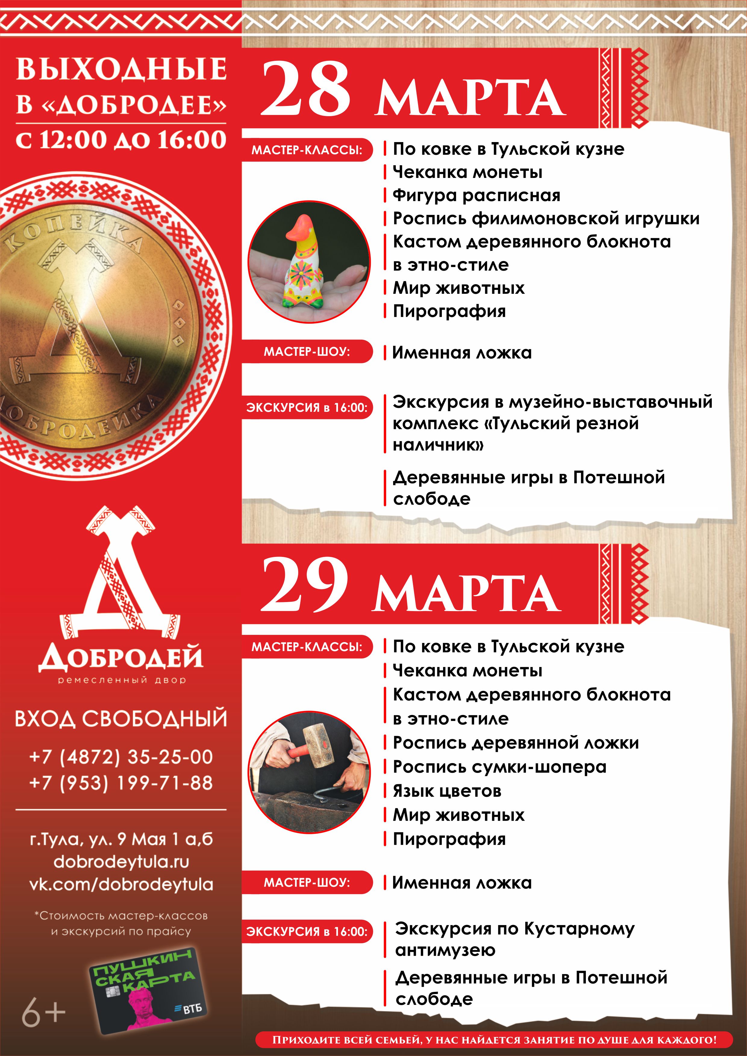28 и 29 марта добродеи приглашают детей и взрослых на творческие и ремесленные мастер-классы.