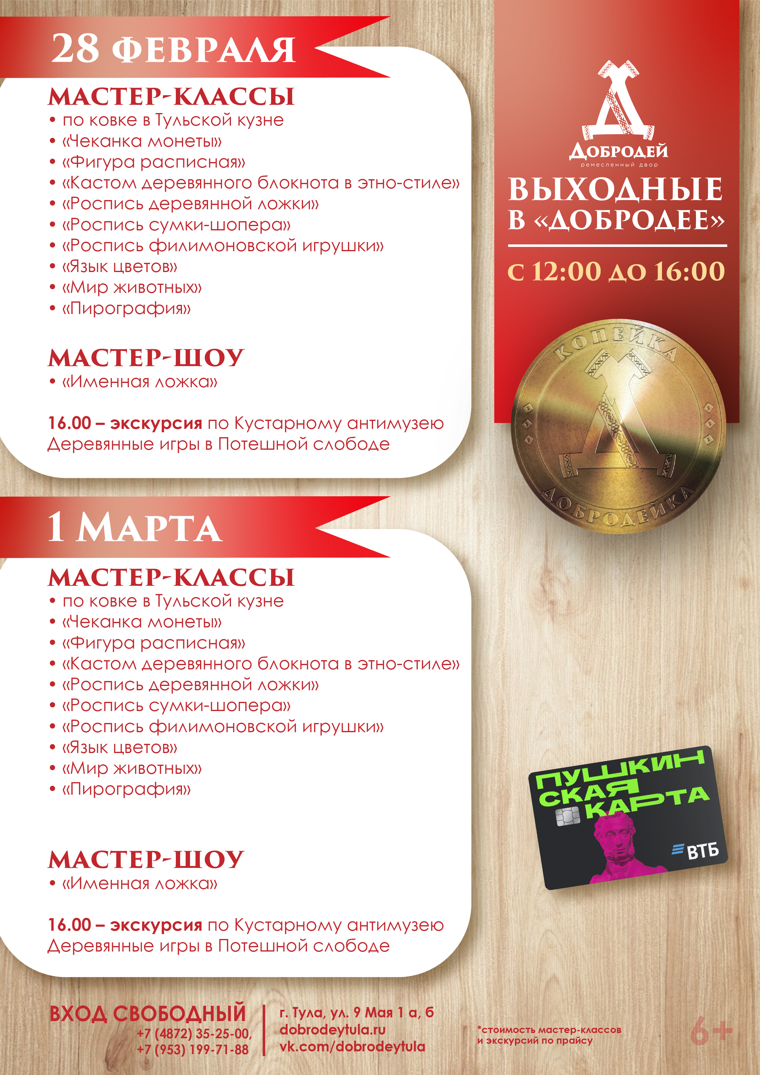 28 февраля и 1 марта добродеи приглашают детей и взрослых на творческие и ремесленные мастер-классы.