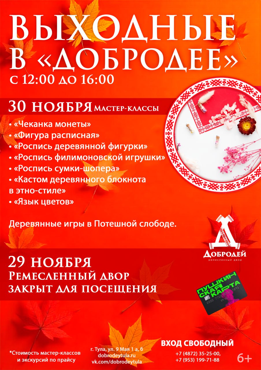 29 ноября, в субботу, ремесленный двор закрыт для посещений.