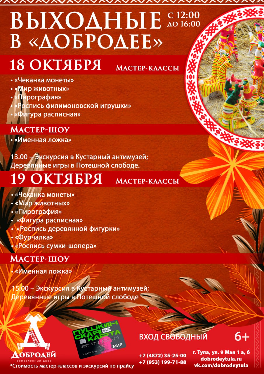 В воскресенье, 19 октября, состоятся мастер-классы: