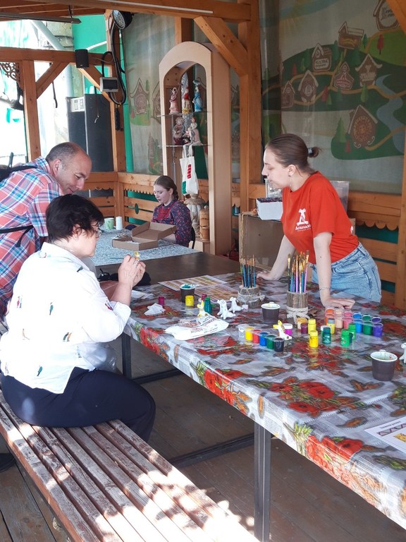 Также все желающие приняли участие в мастер-классах по росписи сумки-шопера и филимоновской игрушки, под руководством мастера сделали забавных животных из деревянных чурбачков.