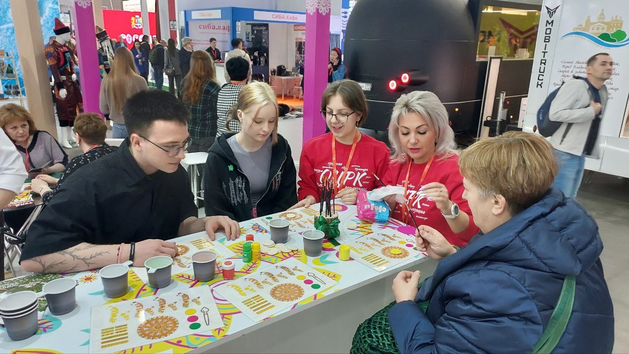На региональном стенде для гостей команда «Добродея» проводит тематические мастер-классы, посвященные народным промыслам региона. Посетители могут украсить керамические кулоны узорами в стилистике традиционной филимоновской игрушки, познакомиться с историей и традициями народного промысла.