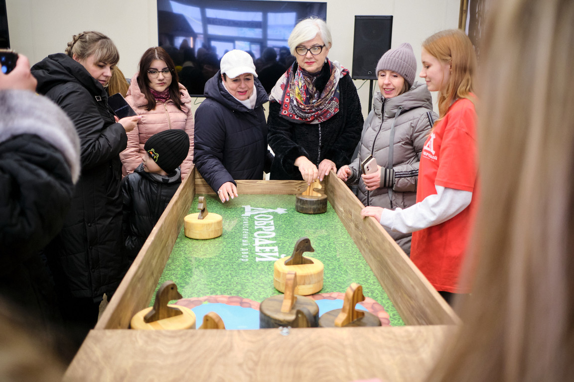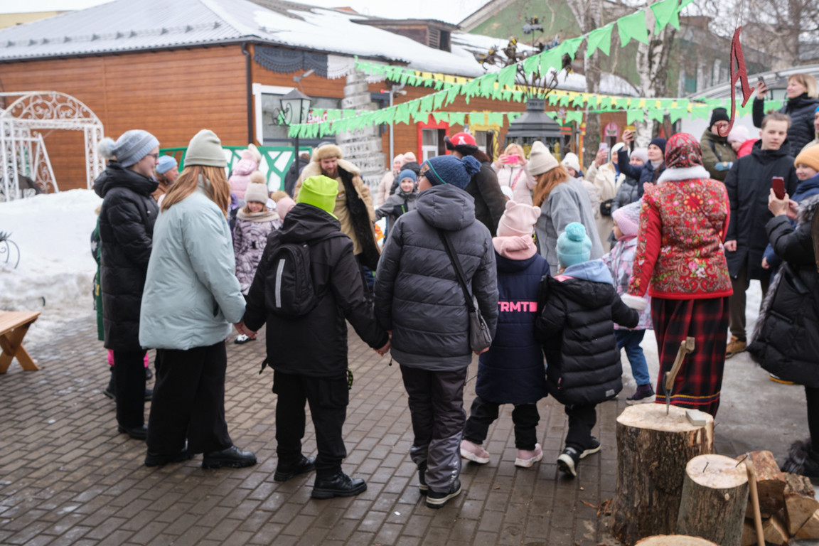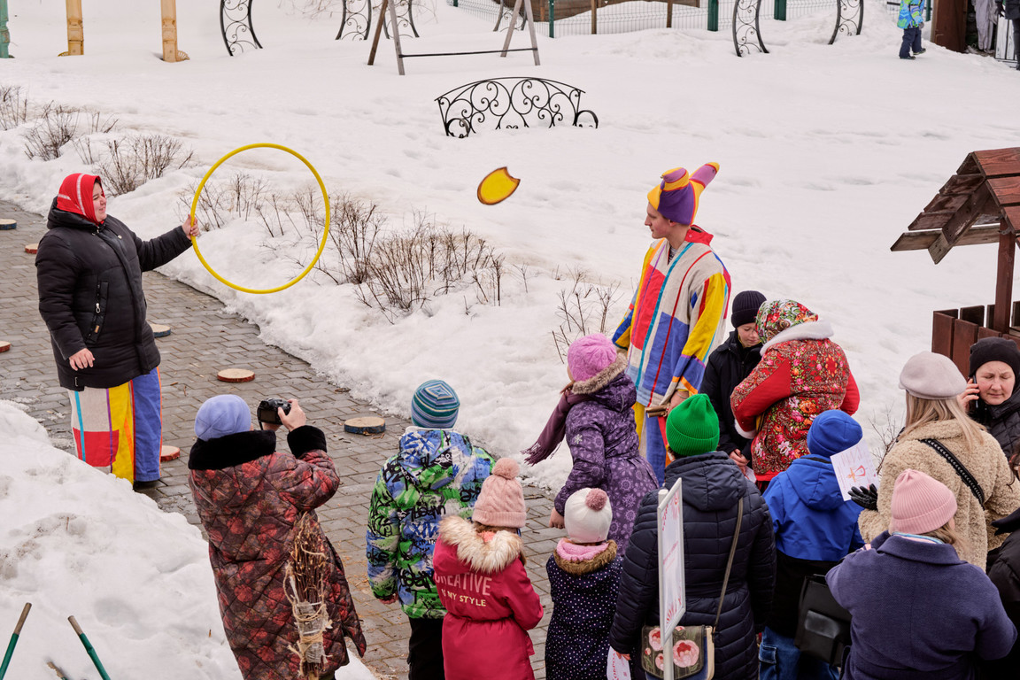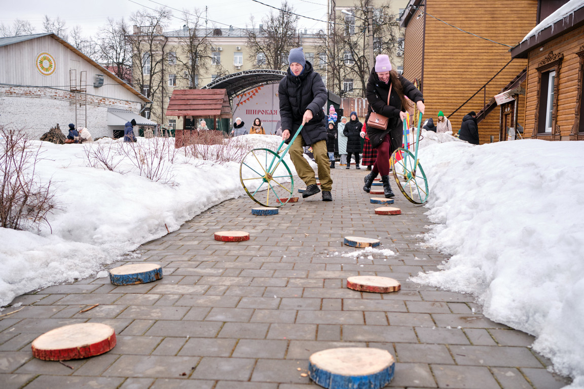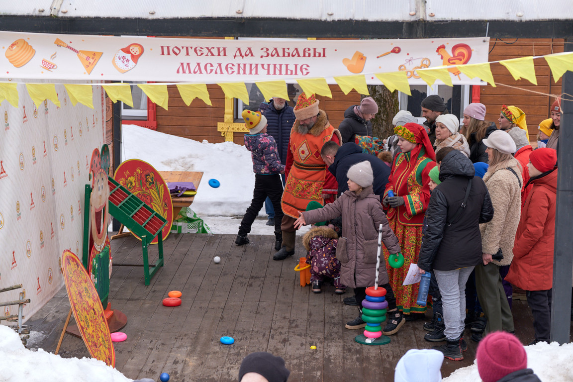Ощутить атмосферу традиционных масленичных гуляний на празднике помогла игровая программа «Потешная площадь» с играми и соревнованиями. Была притягательной для гостей площадка настольных деревянных игр «Ручеёк, гора, калач – докажи, что ты ловкач!» в творческом пространстве «РемесЛофт». Смелые и сильные смогли посостязаться в конкурсно-игровой программе «Богатырский двор», где метали валенки, носили ведра коромыслом, где мастер-столяр научил всех желающих забивать гвозди и открыл победную стратегию в боях на мешках.