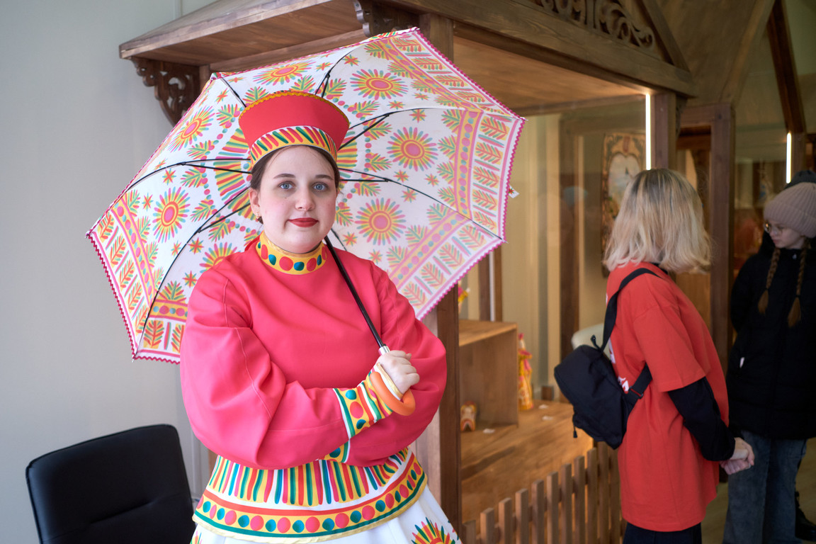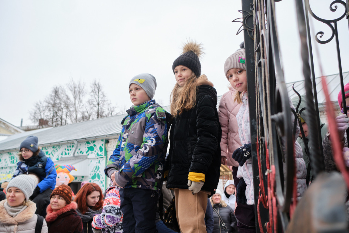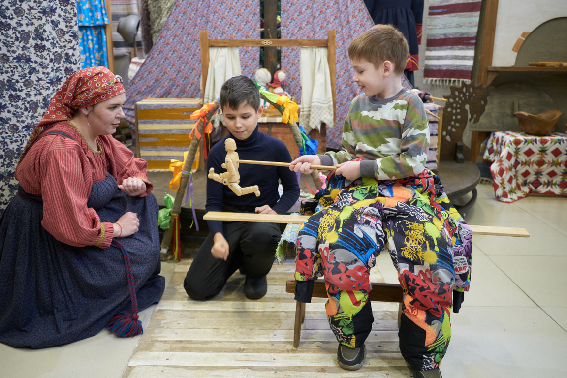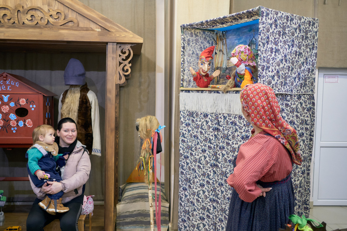 В фольклорном театре «Булыжник» прошли представления народной кукольной комедии «Как Петрушка и Марфушка Масленицу поджидали» в жанре ярмарочного балагана, а также обзорные экскурсии по театру.