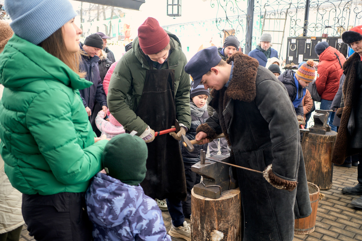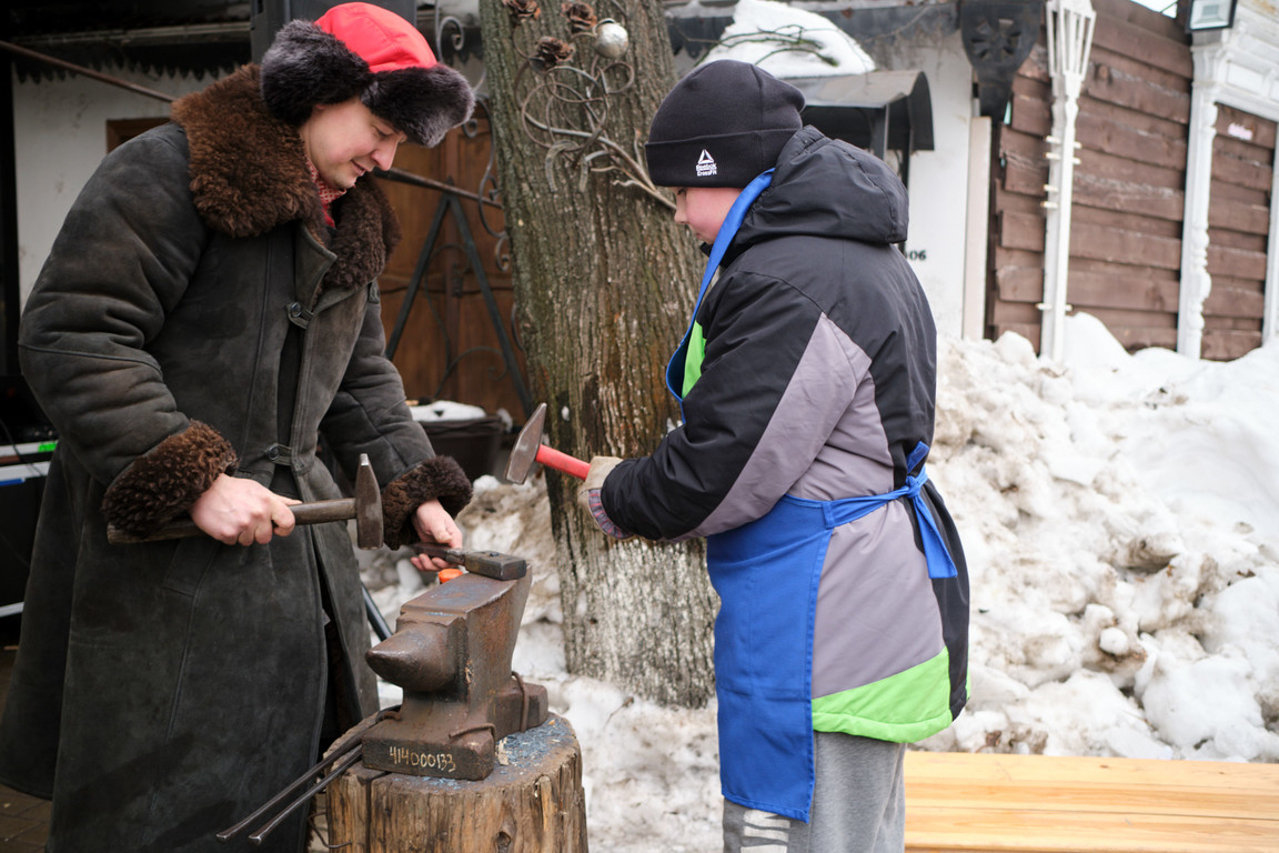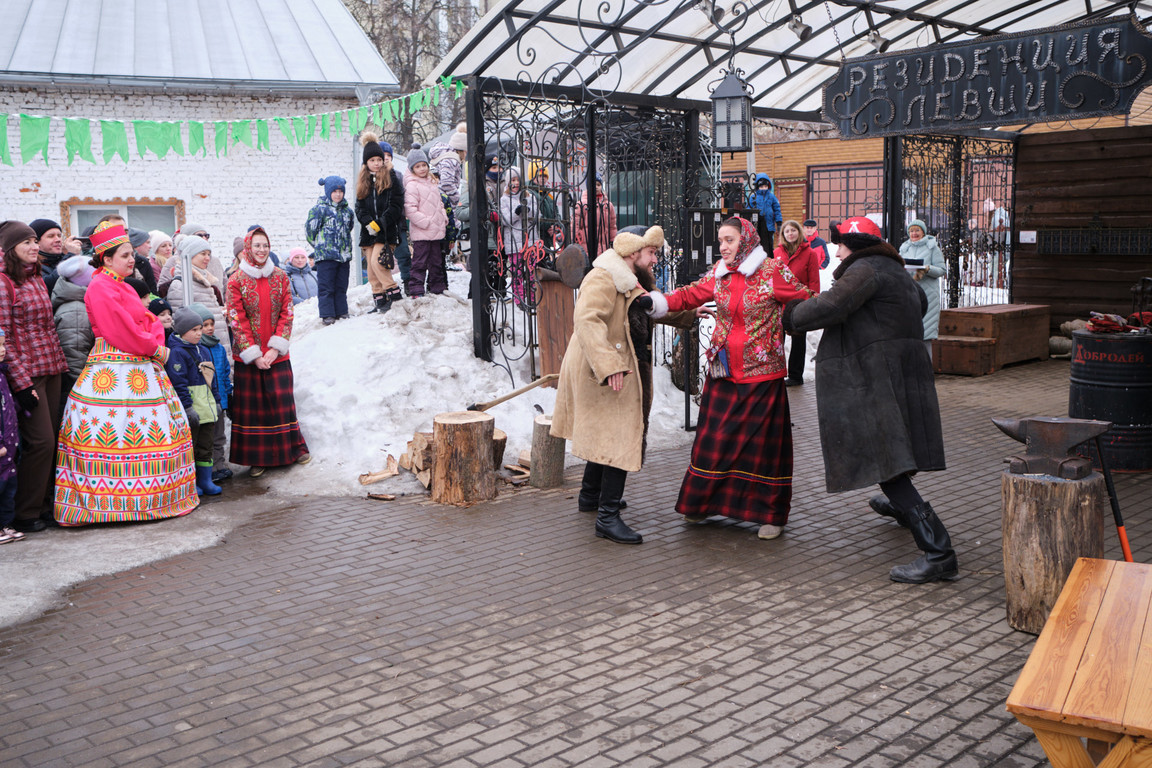 Точкой притяжения стало яркое шоу «Забавы по-нашему!» в Тульской кузне. Гости перенеслись в мастеровую Тулу на полтора столетия назад и стали участниками необычной истории, приключившейся на Масленицу с кузнецом и столяром, затеявшими спор, чье ремесло важнее и сложнее.