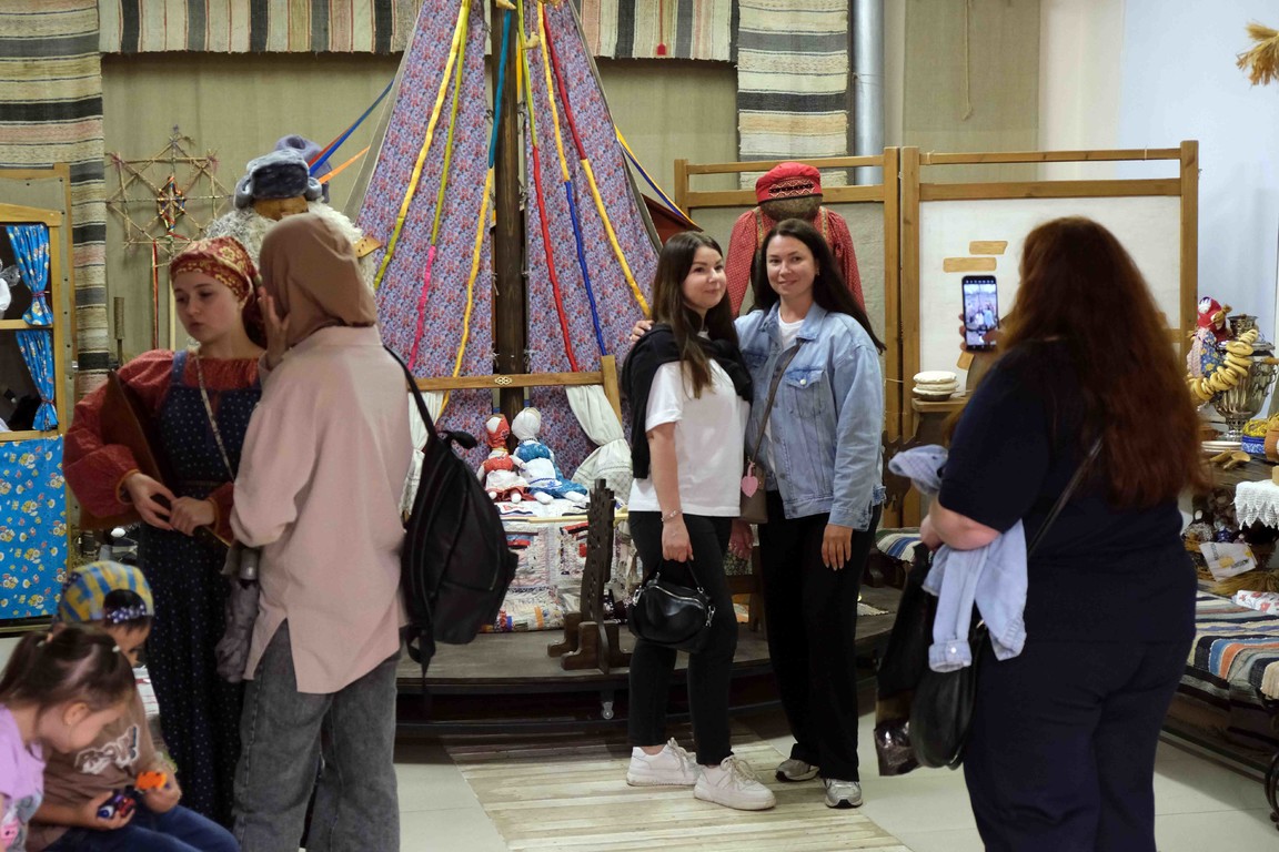 На площадке «Этно-объектив» работала выставка национальных костюмов. Здесь можно было примерить отдельные элементы нарядов и сделать памятные фотографии.