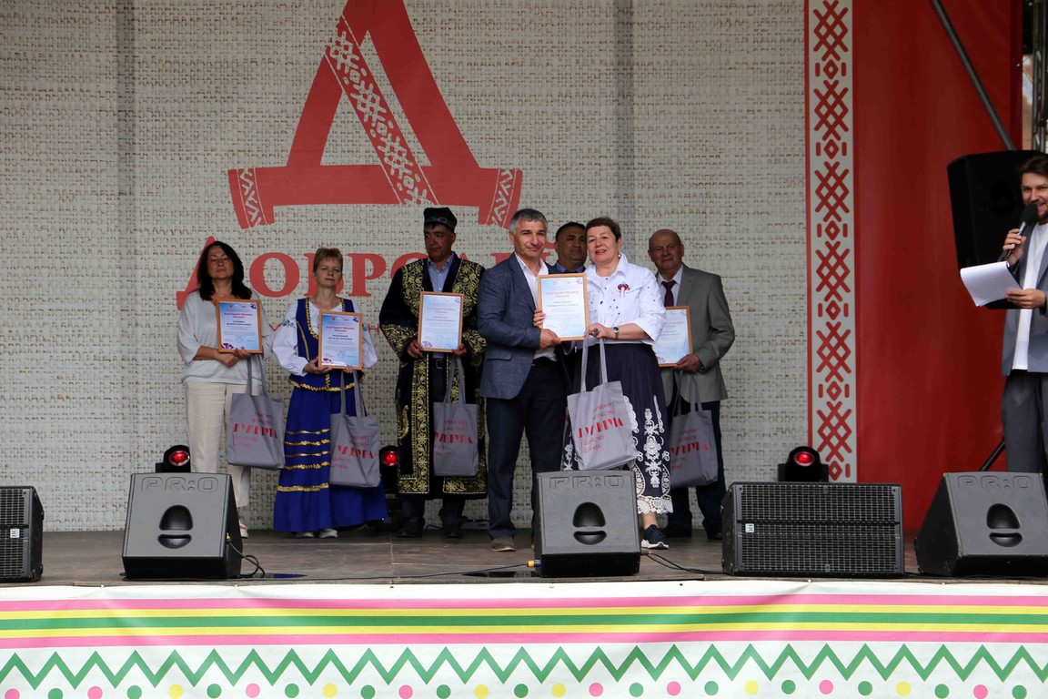 Заместитель председатель Тульского регионального ОГО «Ассамблеи народов России» Лев Райхлин поздравил всех с праздником и вручил благодарность Елене Арбековой за активную деятельность, направленную на сплачивание национальных культур региона. Наградами организации отмечены также представители национальных диаспор.