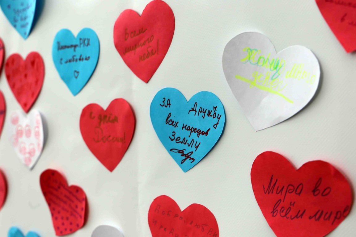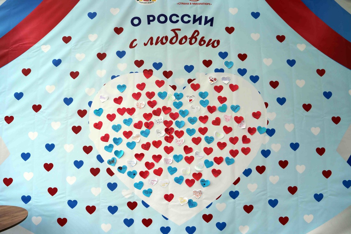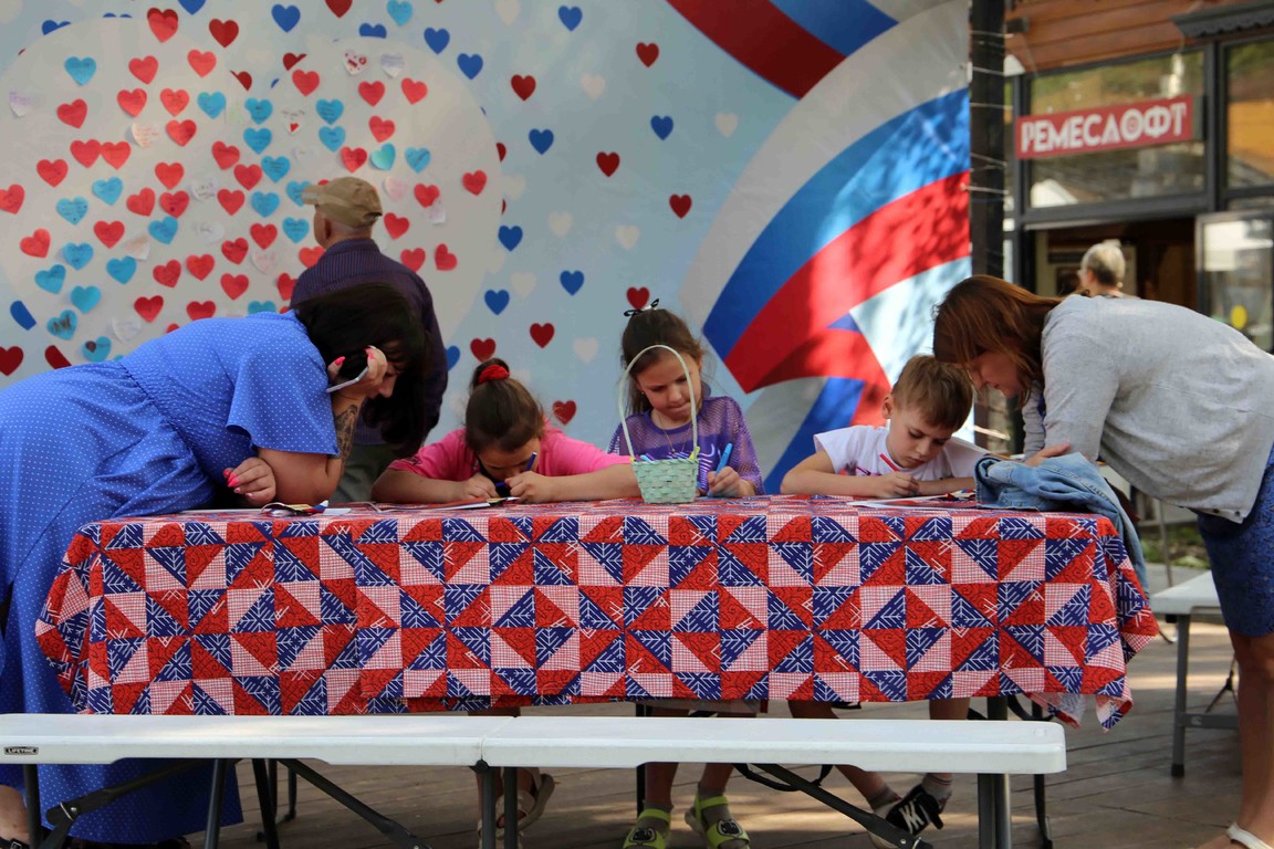 Праздник стал окном в мир уникальных традиций и незабываемых впечатлений, соединив сотни людей светлыми чувствами. Свои эмоции дети и взрослые выразили на сердечках, украсивших большое панно «О России с любовью». В них – искренние пожелания мира и добра всем россиянам.