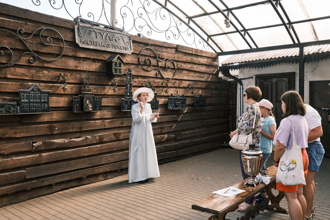 В Тульской кузне провели экскурсию по «Металлической улице». Эта новая достопримечательность ремесленного двора рассказывает об исторических особняках и сооружениях старой Тулы.