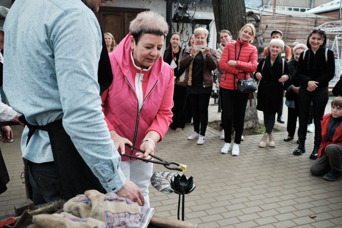 В завершающий день форума в Тульской кузне прошло мастер-шоу "Кузнечные были". Гости узнали об истории кузнечного ремесла. Вместе с кузнецами попробовали создать кованый цветок (одолень-траву), ставший символом преодоления всех препятствий и трудностей.