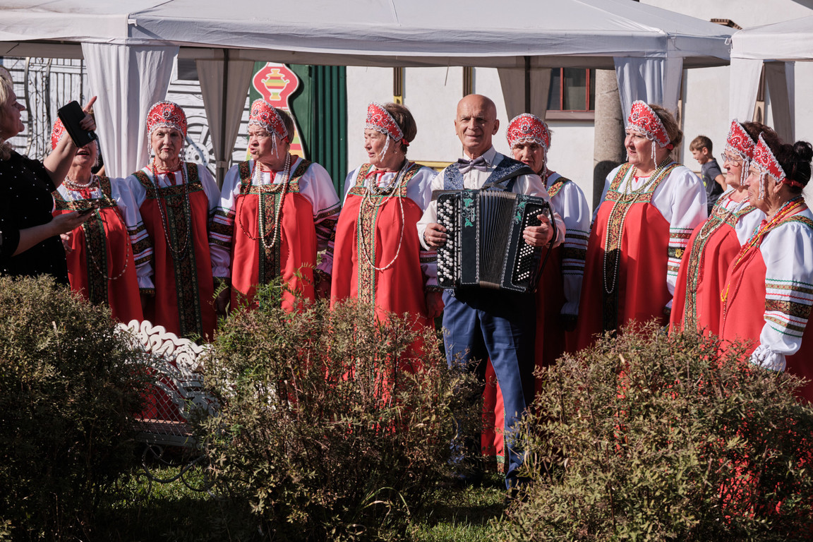 Участники и гости фестиваля прогулялись по ремесленному двору, а на Пряничной веранде и выпили чаю из настоящего тульского жарового самовара.