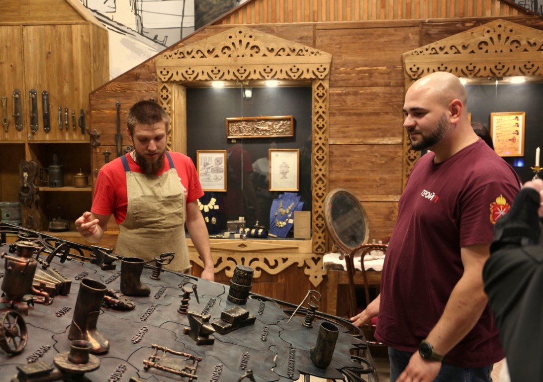 Для участников круглого стола руководители и специалисты Объединения центров провели экскурсию по ремесленному двору «Добродей». Гости побывали в Кустарном антимузее, музейно-выставочном комплексе «Тульский резной наличник», на площадке цикла гастрономических интерактивных программ «Пляшем от печки», поиграли в «Деревянные игры» на Пряничной веранде.