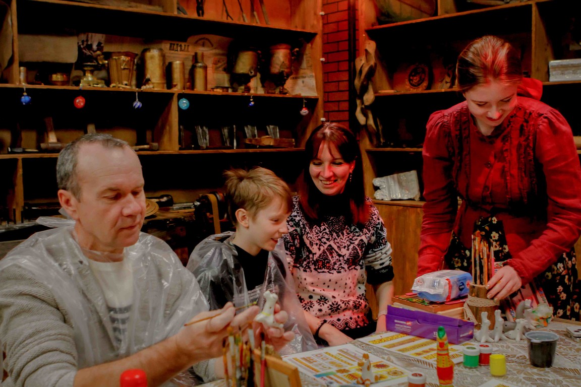 Сегодня для гостей ремесленного двора добродеи провели интерактивную программу «С самоваром в Новый год». Участники узнали секреты тульских кузнецов, тайны резных наличников, как правильно растопить жаровой самовар, проявили свои творческие способности на мастер-классе по росписи, и, конечно же, отведали традиционные тульские сладости с ароматным чаем.