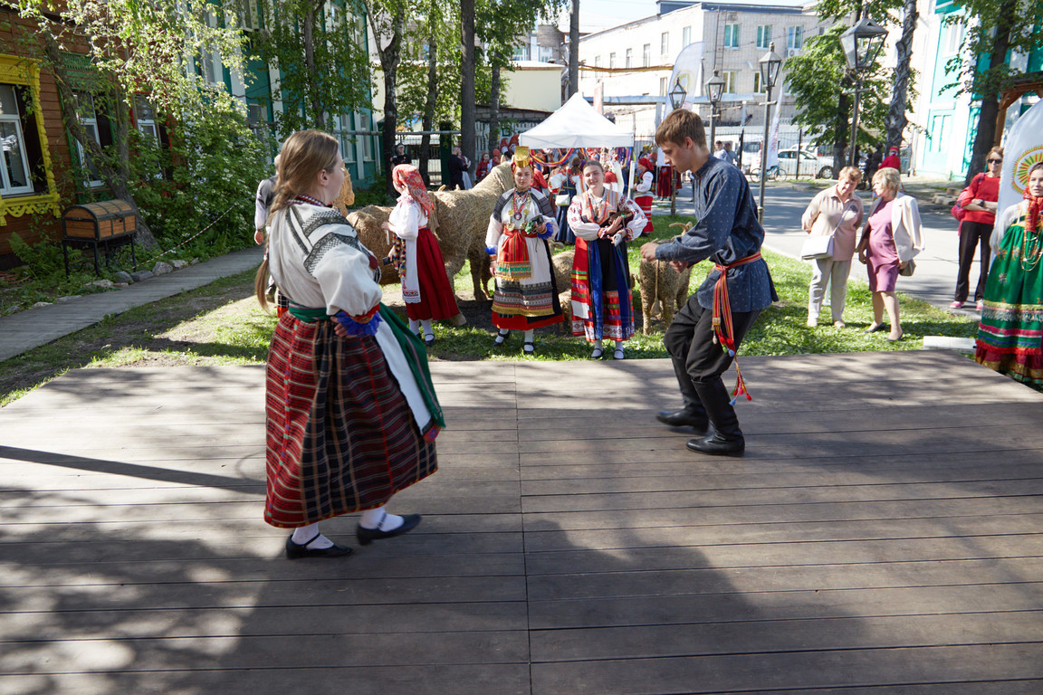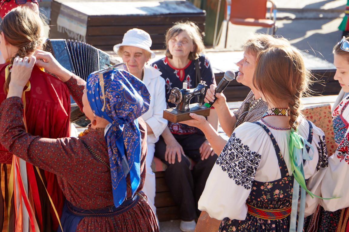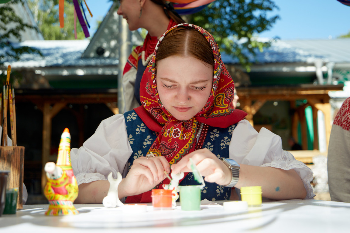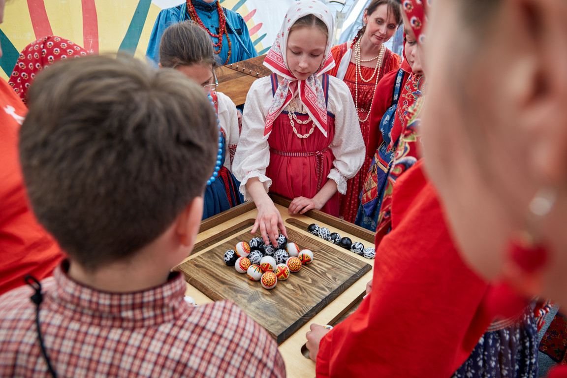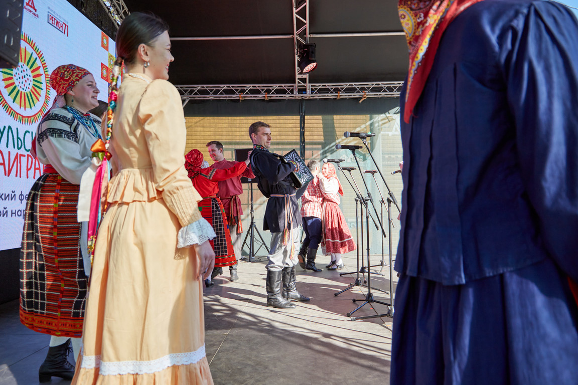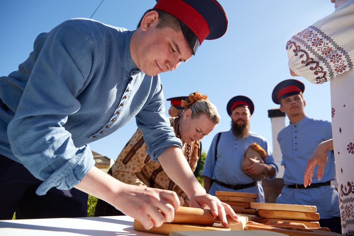 Затем участники проявили себя на 8 интерактивных конкурсных площадках. Здесь они исполняли частушки и мерились силами в народной пляске, растапливали тульский жаровой самовар и пекли тульские пряники, соревновались в деревянных играх и расписывали филимоновскую игрушку.