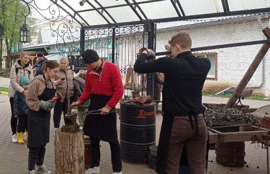 Тульская кузня пригласила потрудиться по-ударному. Здесь гости смогли изготовить кованые украшения и подковы, а также отчеканить монетки «Добродейки» и браслеты из самоварного золота в древнерусском стиле.