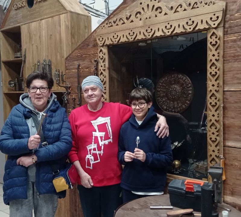 Мастера-добродеи поделились с туристами секретами хорошего настроения. Под руководством гравера каждый смог нанести свои инициалы на именную ложку.