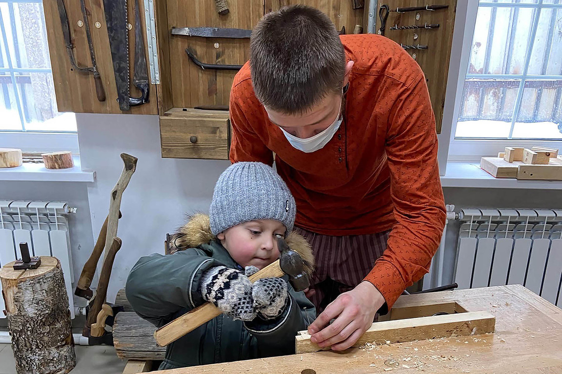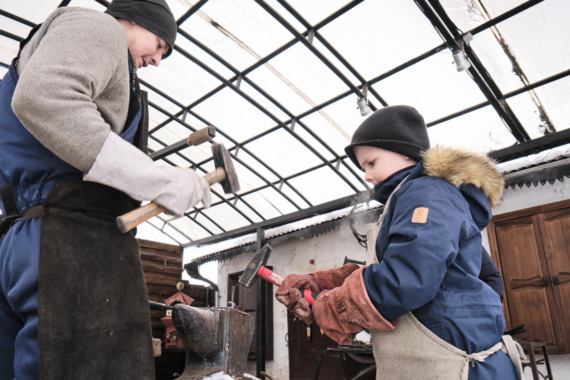 Кроме познавательной части программа дня включала занимательные мастер-классы и разнообразные развлечения. Дети и взрослые мастерили деревянных животных и осваивали холодную обработку металла – чеканку. Все желающие смогли встать к наковальне и выковать под руководством кузнеца гвоздь и подкову на удачу. Забрать с собой оригинальный сувенир гостям помогал мастер, выгравировавший для желающих добрые пожелания, веселые напутствия и имена.