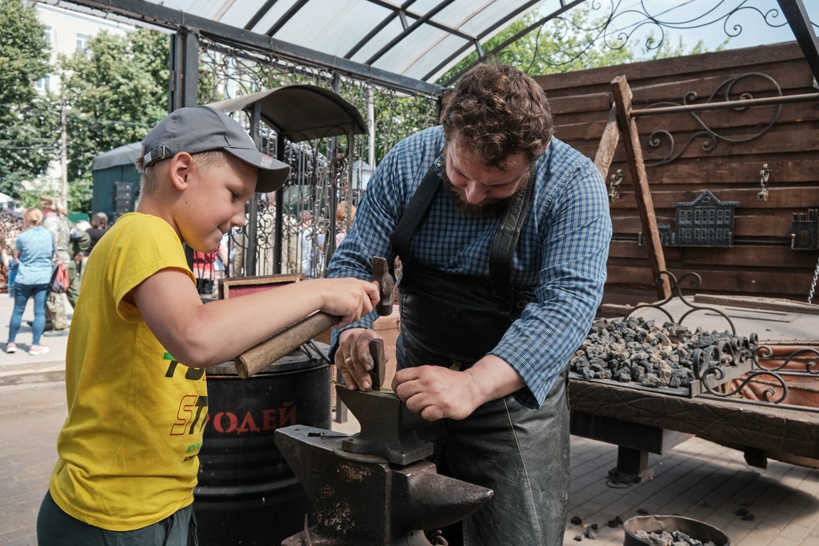 В субботу в ремесленном дворе прошли мастер-классы по чеканке монеты, ковке подковы и гравировке именной ложки.